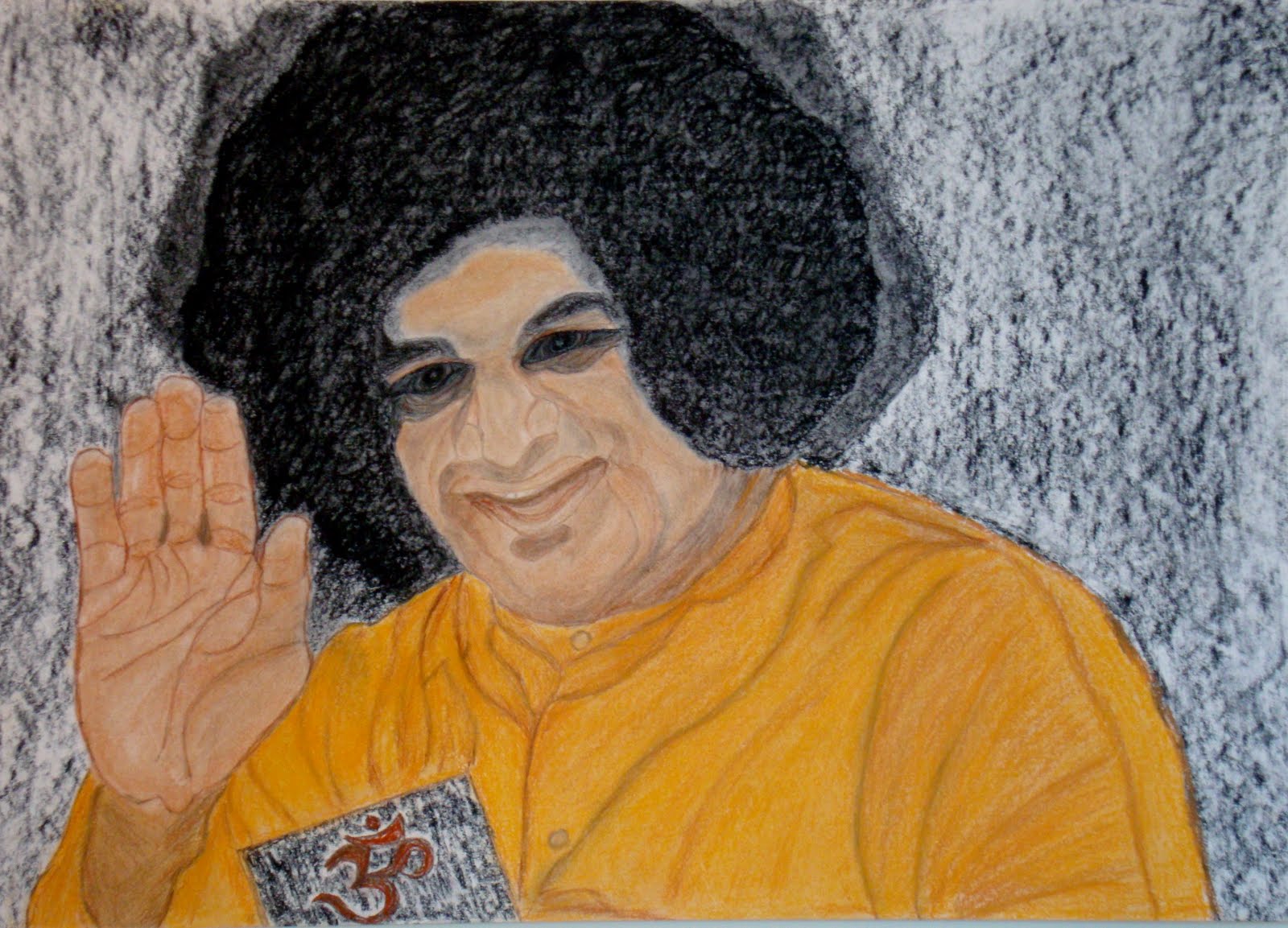 Renuka has informed me in her letter today, that Swami wanted me to draw his robe in yellow color. He had also told her the exact pose he wanted to be portrayed. However, after our initial phone chat I didn’t communicate with Renuka for nearly a week, until the picture was finished and I published it on the website!!