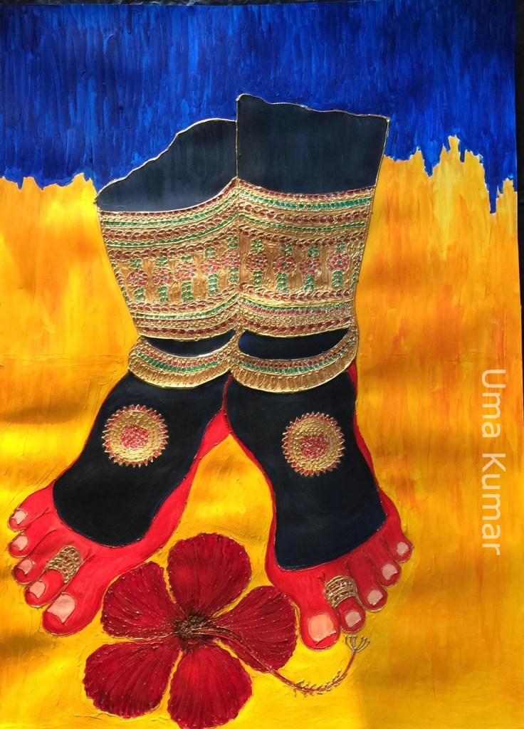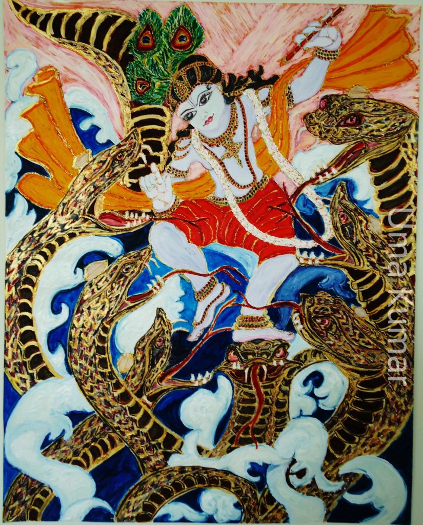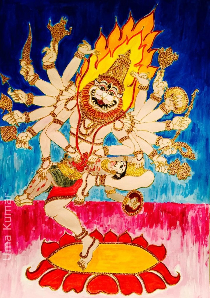 More paintings Click to view larger images. Ma Kali Charanam Ugra Narasimhar Sri Sathya Sai Baba Jnana Skanda Guru – by Uma Kumar Kalinga Krishna – by Uma Kumar Hanuman – by Uma Kumar Tirupathi Balaji and Thaayar Share this: Click to share on X (Opens in new window) X Click to share on Facebook (Opens in new window) Facebook Like Loading... Related