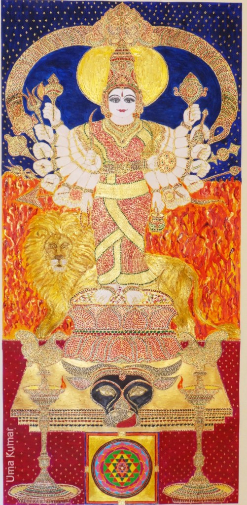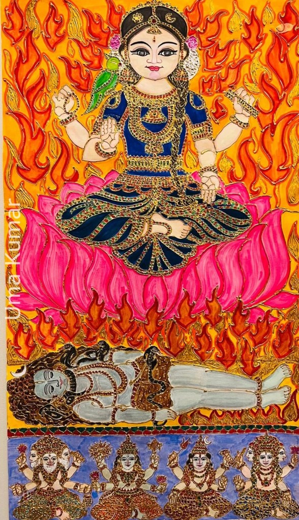 After a few more verses had been completed on July 13th, I realized there would be 31 verses and the last set of verses from Verse 23 up to 31 would be her Viswaroopa Darshan.