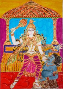 - Om chithra varNambaradhare devi, chathur bhuje, paasangkusa hasthe, abhaya vara pradhe om